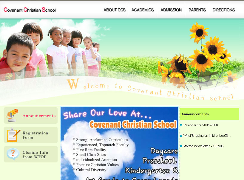 Covenant Christian School 웹사이트 주소 변경