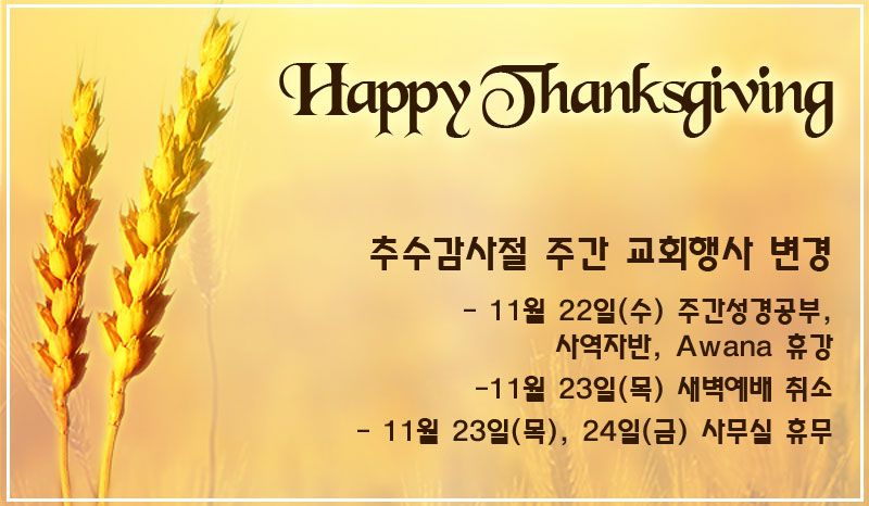 추수감사절 주간 교회행사 변경