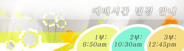 1부: 8:50am / 2부: 10:30am / 3부: 12:45pm