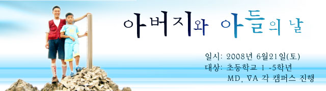 휄로쉽교회 초등부에서는 다가오는 ‘아버지 날’을 맞이하여 아래와 같이 “아빠와 아들의 나들이” 시간을 마련했습니다. 초등부 1-5학년 까지의 아들(들)을 두신 아버지들께서는 꼭 참가하셔서 아름답고 귀한 추억의 시간을 함께 즐기시기 바랍니다.