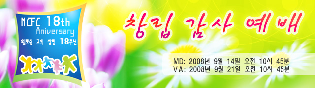 휄로쉽 교회 18주년 창립 감사 예배 안내