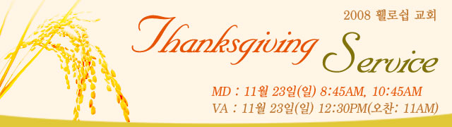 추수 감사절 예배 안내