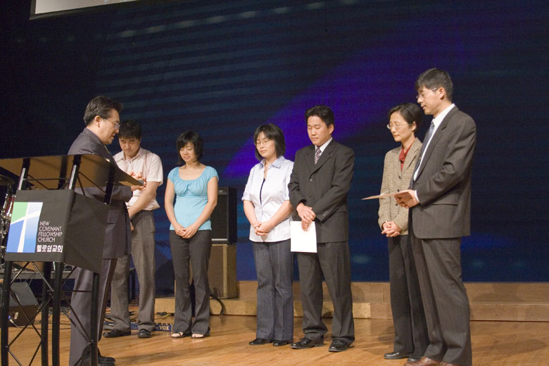 오이코스 분가 및 인도자 임명식과 헌아식이 2부 예배중에 있었습니다
