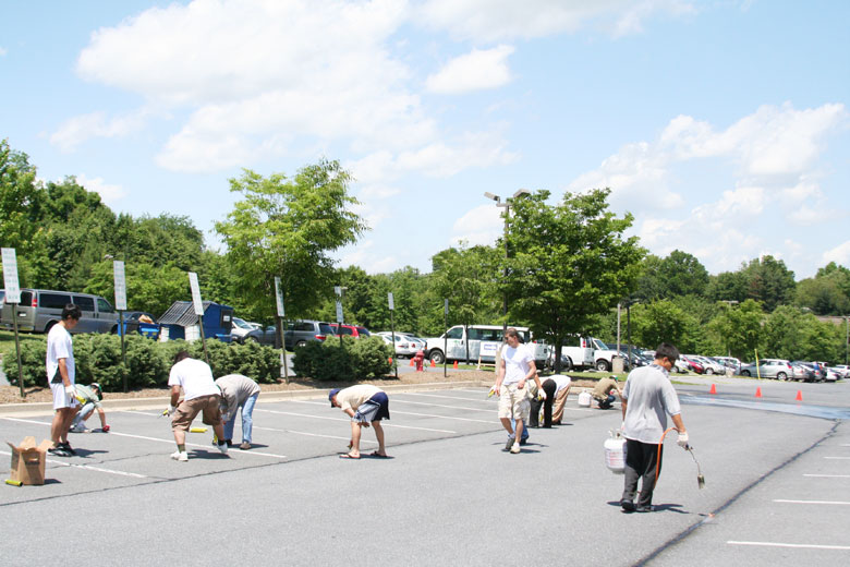 건물관리부 주차장 보수 작업 모습
