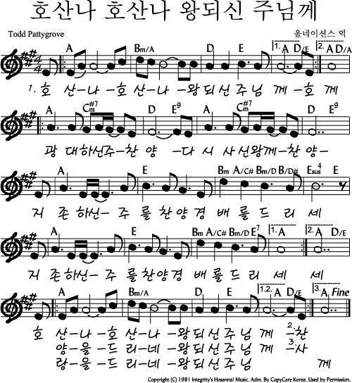 호산나 호산나 왕되신 주님께