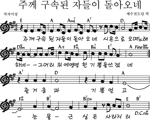 주께 구속된 자들이 돌아오네