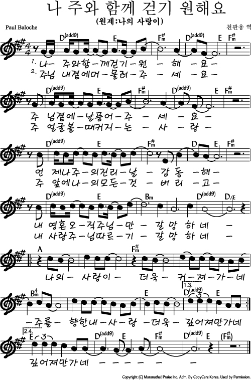 나 주와 함께 걷기 원해요