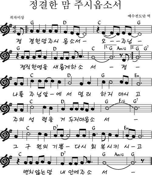 정결한 맘 주시옵소서