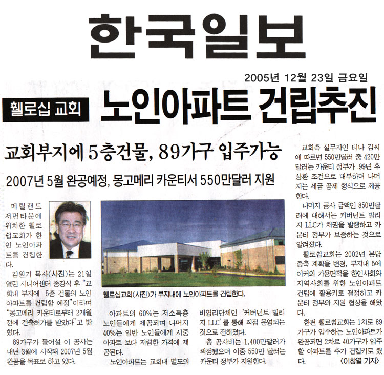 교회 노인 아파트 건립 관련 기사가 나와서