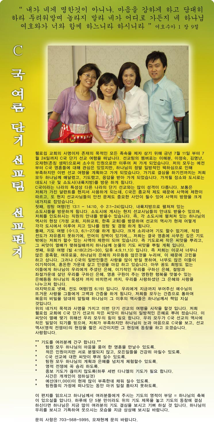 2006 단기 선교팀 안내