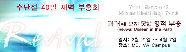 "수난절 40일 새벽 부흥회"가 다음주 수요일(2월 21일)부터 시작 됩니다.