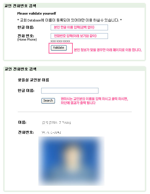 교인 전화번호 검색 안내
