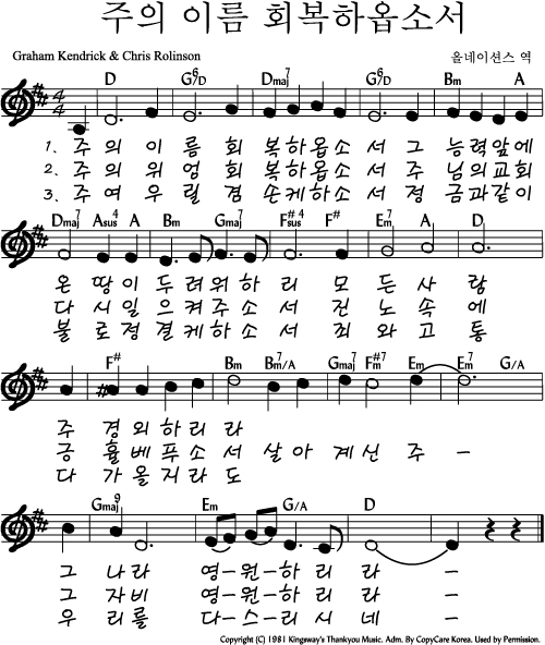 주의 이름 회복하옵소서